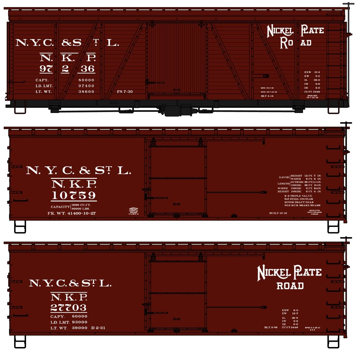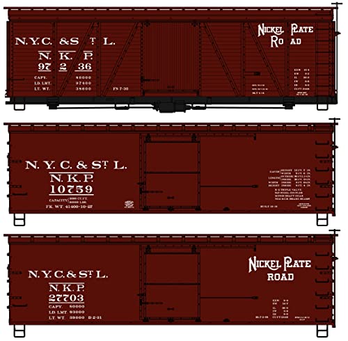 Accurail HO Scale Kit 36' Wood Boxcars Nickel Plate 97236/10759/27703 (3-Pack)