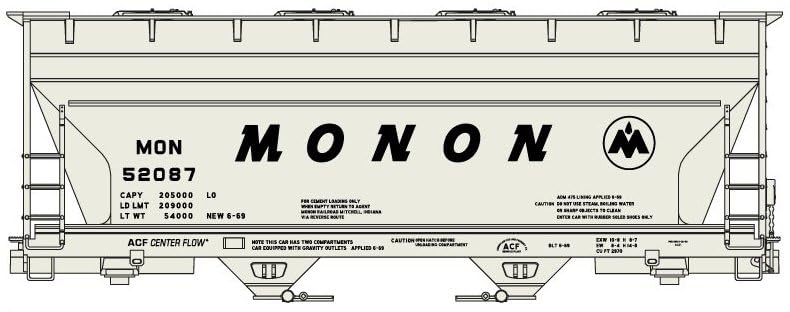 Accurail HO Scale Kit ACF 2-Bay Covered Hopper Monon (Gray/Black) Assorted #s