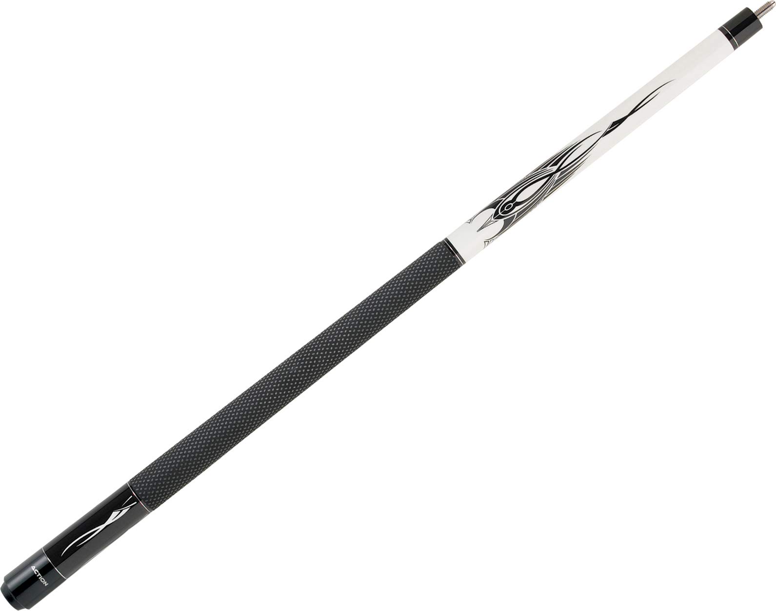Action's Black and White line of cues is a stunning line of Bold Design. Each cue includes 29" hard rock maple shaft with a 10 - 12" pro taper. Also included is a one-year warranty for all manufacturer defects. If you are looking for simple bold designs, quality craftsmanship and a great value, these cues are for you!