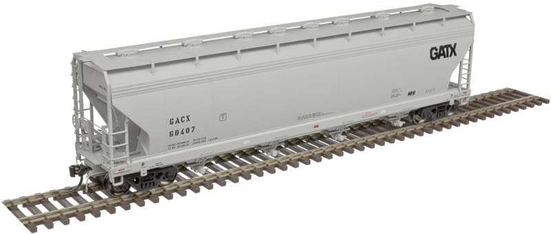 ACF introduced the 5250 cubic foot size covered hopper in 1964, and has since built nearly 20,000 cars. Most of the cars were equipped with pneumatic outlets and eight 20” round hatches for use in transporting plastic pellets. In addition to the plastics cars, a number have been built or converted with gravity outlets and elongated hatches for grain type products. As with most things with long production spans, the design has evolved with changes in the physical features of the body and fixtures. The Atlas model features three unique body style variations to represent those changes from the 1960s into the 21st Century.