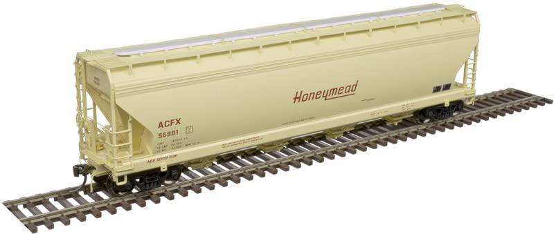 Atlas HO Scale ACF 5250 Covered Hopper Honeymead/ACFX (Beige/Red) #56981