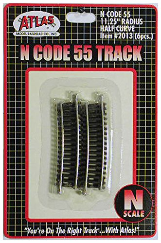 Atlas N Scale Code 55 11.25" Radius 1/2 Curve 6-Pack Model Train Track