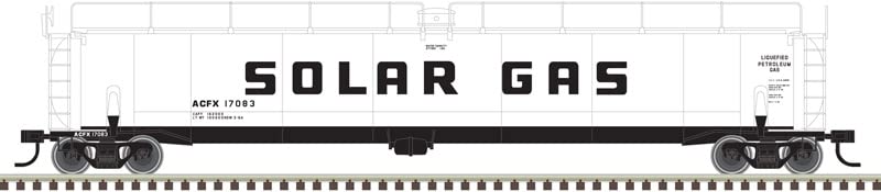The ACF® "whale body" 33,156 gallon tank car was designed to haul liquefied petroleum gas (LPG) and anhydrous ammonia. Originally built in the early 1960s, you can still find these cars in service today. The Atlas O model captures the look and feel of the prototype with state-of-the-art detailing and construction.