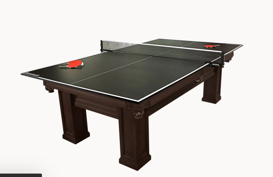 The friendly competition never ends with this durable, foam pad-backed table tennis conversion top. Featured in a stylish black finish with Brunswick brand it includes everything you need to become the next neighborhood champ, including paddles, balls and clip-on net. This game top from Brunswick is manufactured to meet California's formaldehyde emissions regulations. The CT8 Table Tennis Conversion Top fits the following 8' Brunswick and CONTENDER® tables: Acton, Allenton, Artisan, Ashbee, Astoria, Barrington, Bayfield, Black Wolf, Black Wolf Pro, Botanic, Bridgeport, Brixton, Camden, Centurion, Conrad, Cromwell, Danbury, Edinburgh, Genesis, Gibson, Glenwood, Highlander, Kendrick, Kingston, Marquette, Mission, Montebello, Oakland, Park Falls, Providence, Santini, Savanna, Sheldon, Sorrento, Sutton, Tremont, Verona, Westcott, Windsor.