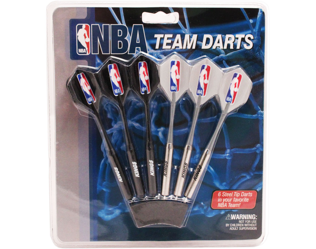 Show your obssesion for the Sacramento Kings with this Awesome Bundled Deal!! You get a premium quality steel tip dart set features six darts (3 black, 3 silver) with team name printed on the barrel and NBA logos on the flights. 20 gram darts and a regulation size and weight billiard ball. Swap it out with your 8-ball, cue ball, or proudly display it!