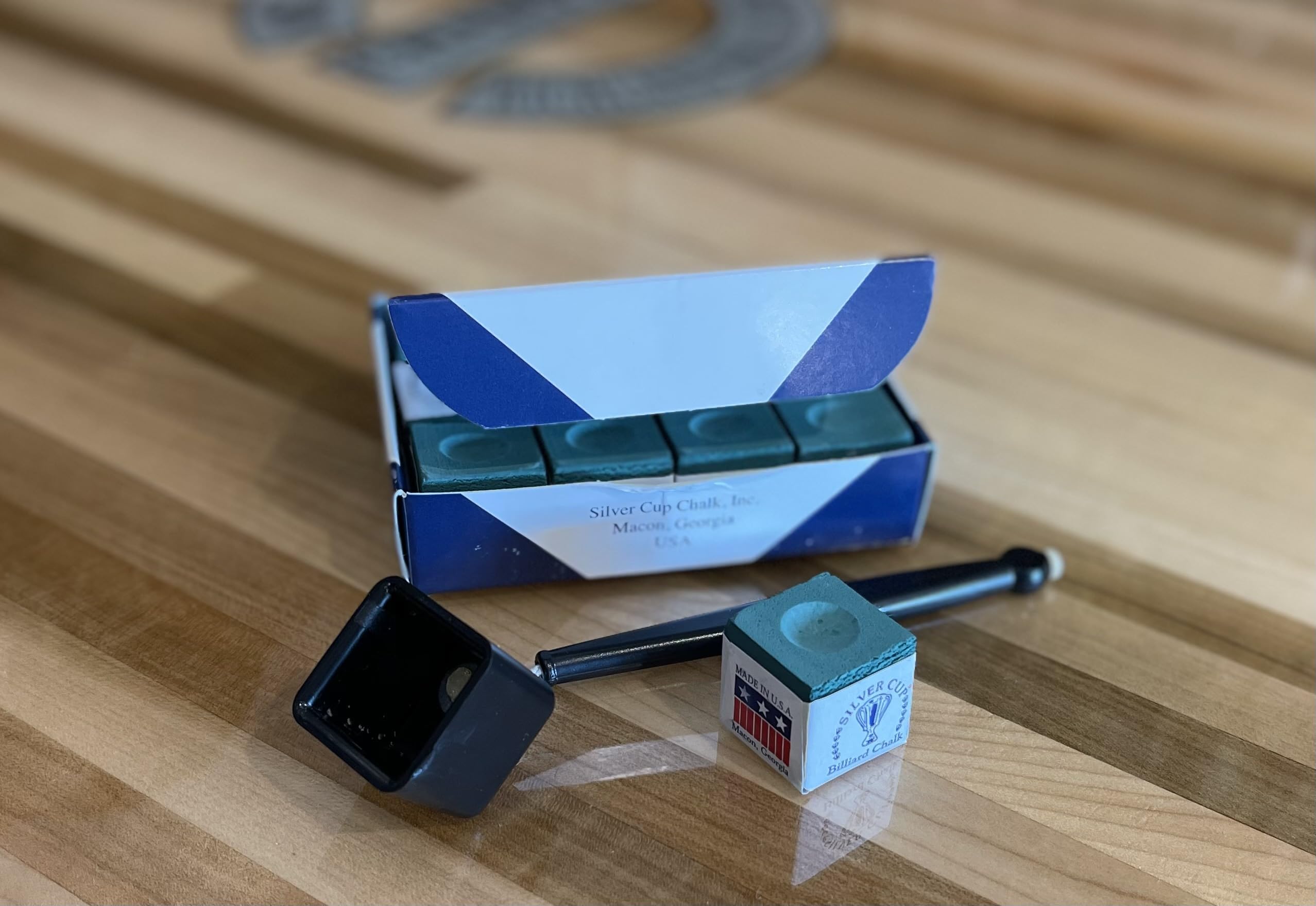Deluxe Chalk Stick Holder Pocket Chalker Pool/ Billiard Cue Accessory w/ One Dozen Silver Cup Green Chalk