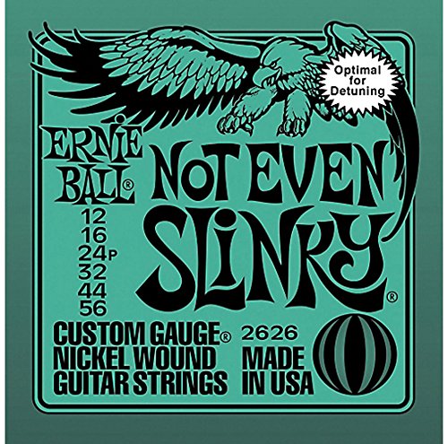 Ernie Ball Not Even Slinky Electric Strings are perfect for those who like to detune their instrument to lower tuning combinations. Metal fans worldwide have gravitated towards the Not Even Slinky set to give their guitar the optimal gauge combination for Drop D & Drop C tuning. These strings are precision manufactured to the highest standards and most exacting specifications to ensure consistency, optimum performance, and long life. Not Even Slinky wound strings are made from nickel plated steel wire wrapped around a hex shaped steel core wire. The plain strings are made of specially tempered tin plated high carbon steel; producing a well balanced tone for your guitar.