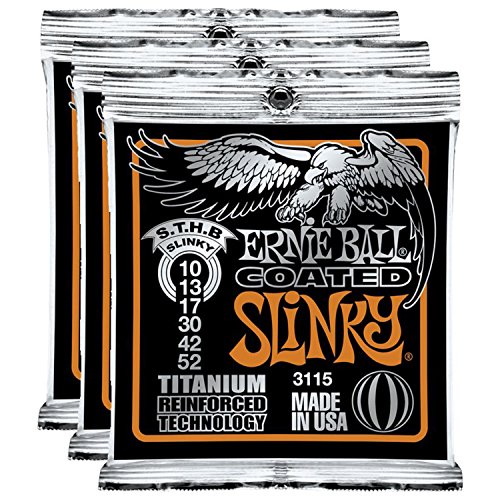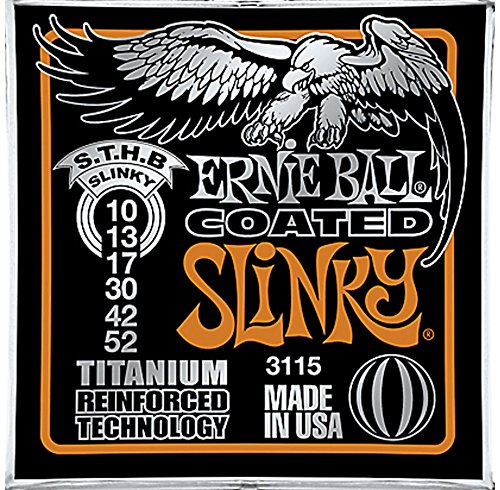 Titanium's inherent strength prevents string breakage, string slippage, and is proven to keep your guitar strings in tune better than conventional plain strings. Ernie Ball Coated Slinky guitar strings maintain the feel and sound of uncoated sets, combining the added protection with the vibrant tone Ernie Ball customers have relied on for over 50 years