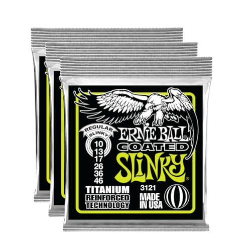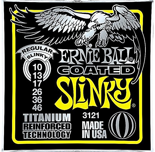 Titanium's inherent strength prevents string breakage, string slippage, and is proven to keep your guitar strings in tune better than conventional plain strings. Ernie Ball Coated Slinky guitar strings maintain the feel and sound of uncoated sets, combining the added protection with the vibrant tone Ernie Ball customers have relied on for over 50 years
