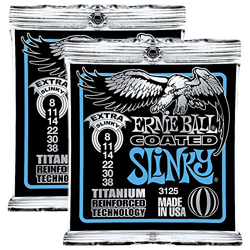 Ernie Ball Coated Slinky Strings combine the latest technological advancements in string manufacturing. All wound strings are treated with groundbreaking nanotechnology? that repels unwanted moisture and oils that negatively impact your tone. ?In addition to treating the wound strings, each plain string features a patented reinforcement winding of titanium wire.