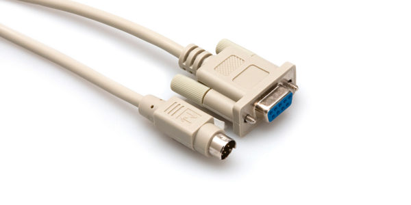 This cable is designed to connect an electronic keyboard with an 8-pin mini-DIN host port to a PC with a 25-pin communications port. It is compatible with Korg, Roland, and Yamaha electronic keyboards. Features include: