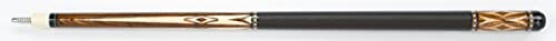 Jacoby HB Series HB3 custom pool cue. This cue is constructed of Bacote at the forearm with Twenty-Eight Tiger Stripe Maple inlays. The butt sleeve is Bacote with Tiger Stripe Maple Inlays. Completing the cue with a black textured leather wrap, double white ring pattern, and one of Jacoby’s high performance Ultra pro shafts.