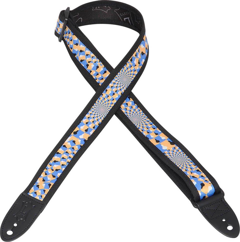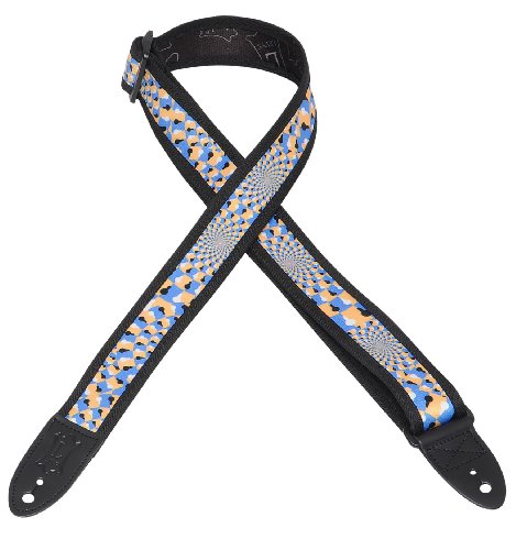 • Levy's Slim-line Sonic Art Series • 1.5" Polyester Guitar Strap • Black Binding, Leather Ends, & Tri-Glide Adjustment • Adjustable up to 60" This listing is for one strap in the color pictured/described.