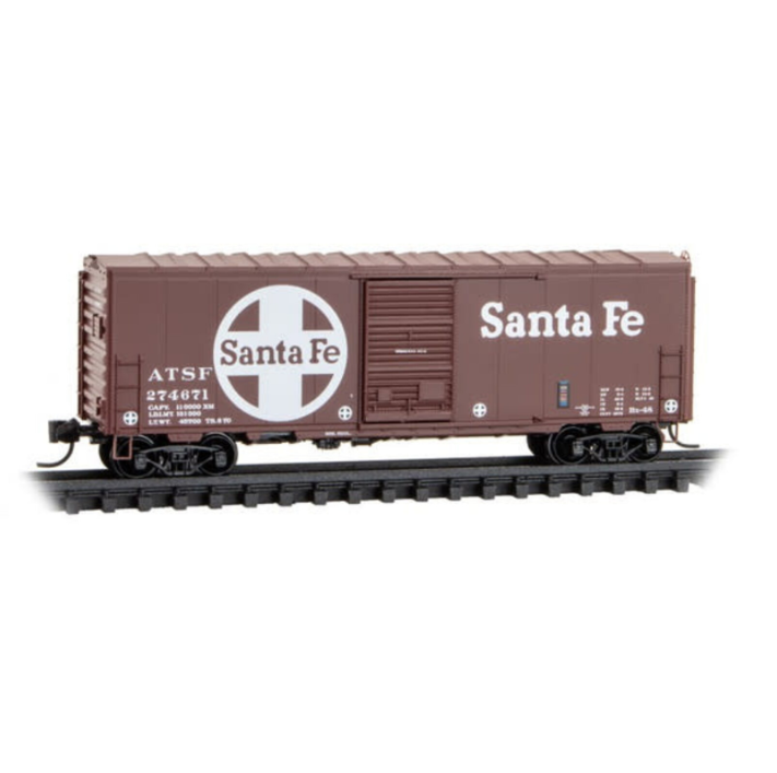 The Micro-Trains N 07300600 40' Single Door Box Car ATSF 274671 is a finely detailed and accurately modeled piece, perfect for any N scale model train enthusiast. This box car replicates the iconic design and functionality of the Atchison, Topeka & Santa Fe Railway (ATSF) box cars used throughout the mid-20th century.