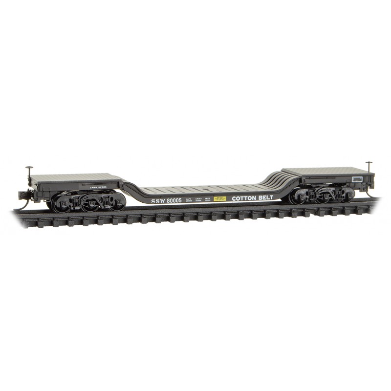 This depressed center flat car with Buckeye trucks had a 250,000-pound capacity and was 65’ in length. St. Louis Southwestern, commonly known as Cotton Belt, was founded in 1891 and became a Southern Pacific subsidiary in 1932, before eventually fully merging in 1992. It is now a heritage component of Union Pacific.