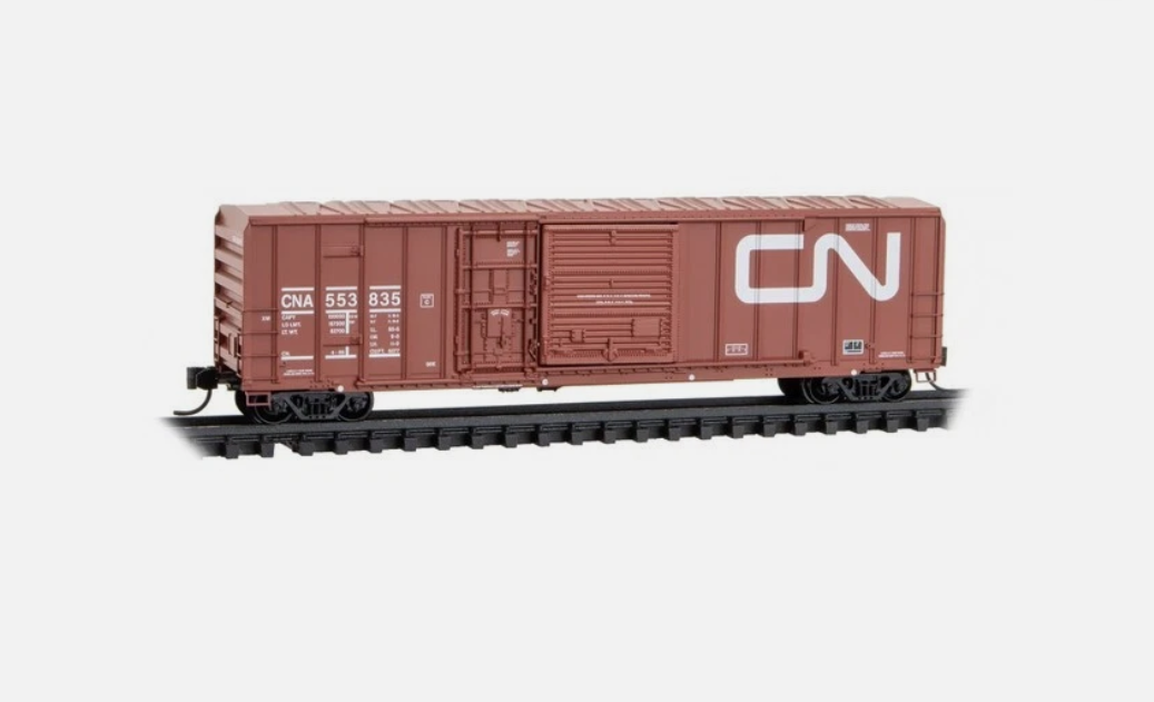 Built in 1972 for Canadian National, this XM class boxcar with Barber Roller Bearing trucks featured an external sliding door and a plug door and internal capacity of 5,304 cubic feet. Canadian National is one of the largest railroads headquartered in Canada, with over 20,000 miles of track and service from Canada into the United States.