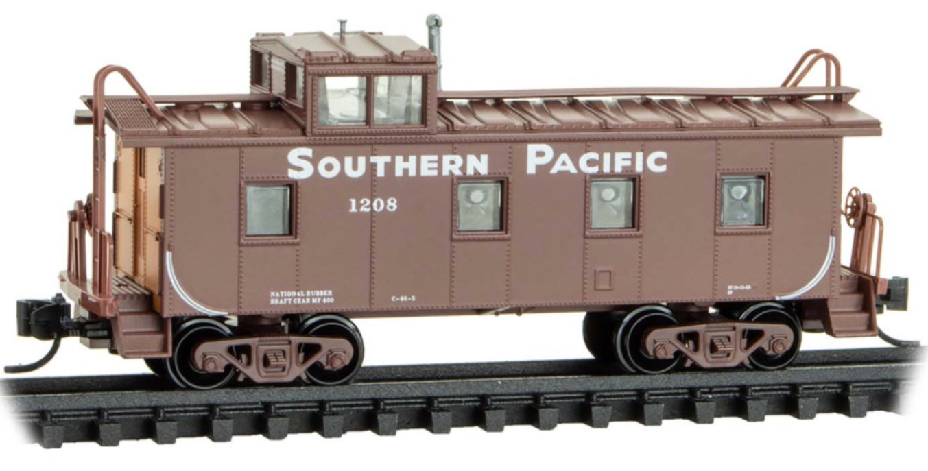 This steel caboose with offset cupola was built in the early 1940s and repainted into the Gothic letter scheme with daylight orange ends by the mid-1950s. Southern Pacific was a Class 1 railroad from 1865 until 1996, when it was absorbed by Union Pacific after falling on hard times financially in the 1970s and 1980s.