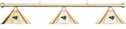 Show your obsession for your favorite team! This 57" three-shade metal light will look great above your pool table! Custom made for you, this light features three metal shades with a white interior for maximum illumination, with two officially licensed logo decals per shade. This light kit also includes a mounting bracket, two 71" mounting chains, and ceiling hardware. The shades are approximately 14" in diameter. The colored metal shades have a matte finish (brass shades are a polished finish - chrome shades are a brushed finish). This fixture is compatible with incandescent bulbs up to 60 watts or CFL and LED lights of any wattage (No bulbs included). Don't miss your chance to purchase a custom light you won't find anywhere else!