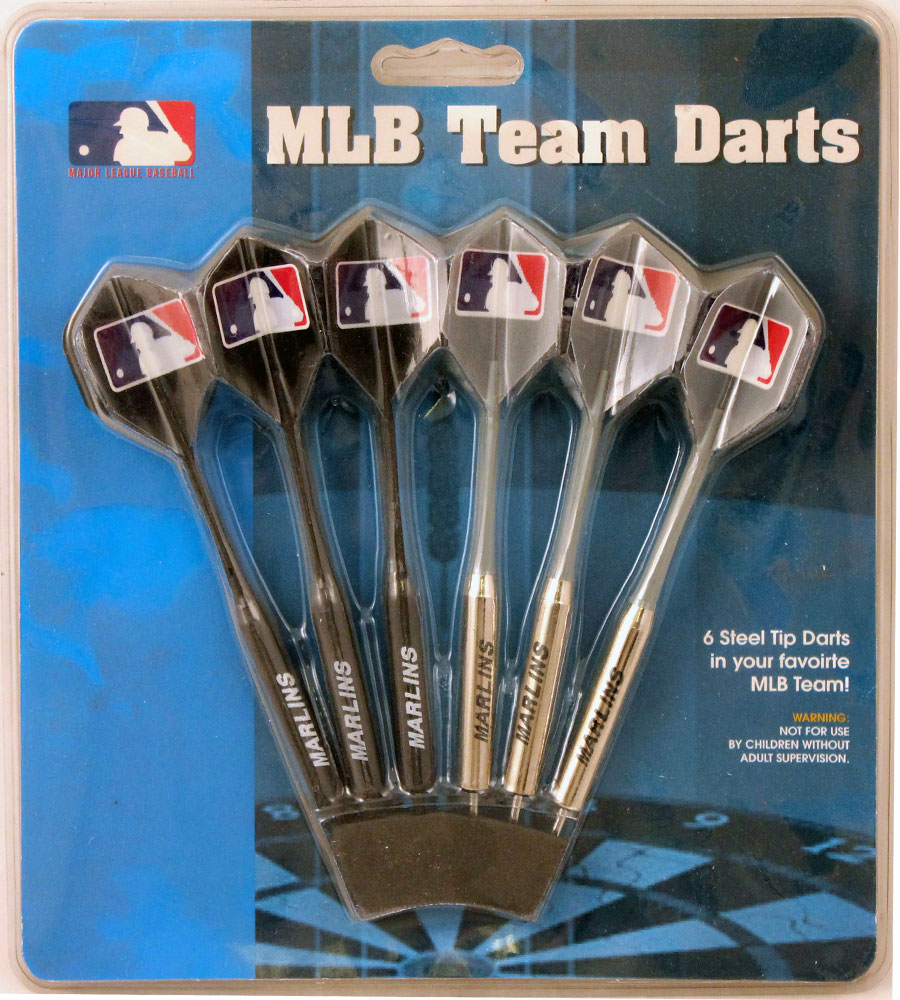 Score a set for your game room! Premium quality steel tip dart set features six darts (3 black, 3 silver) with team name printed on the barrel and MLB team logos on the flights. 20 gram darts.