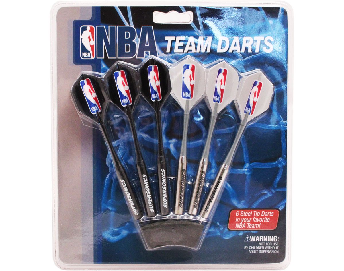 Set of 6 NBA Seattle Supersonics Steel Tip Darts & Flights with NBA Logo