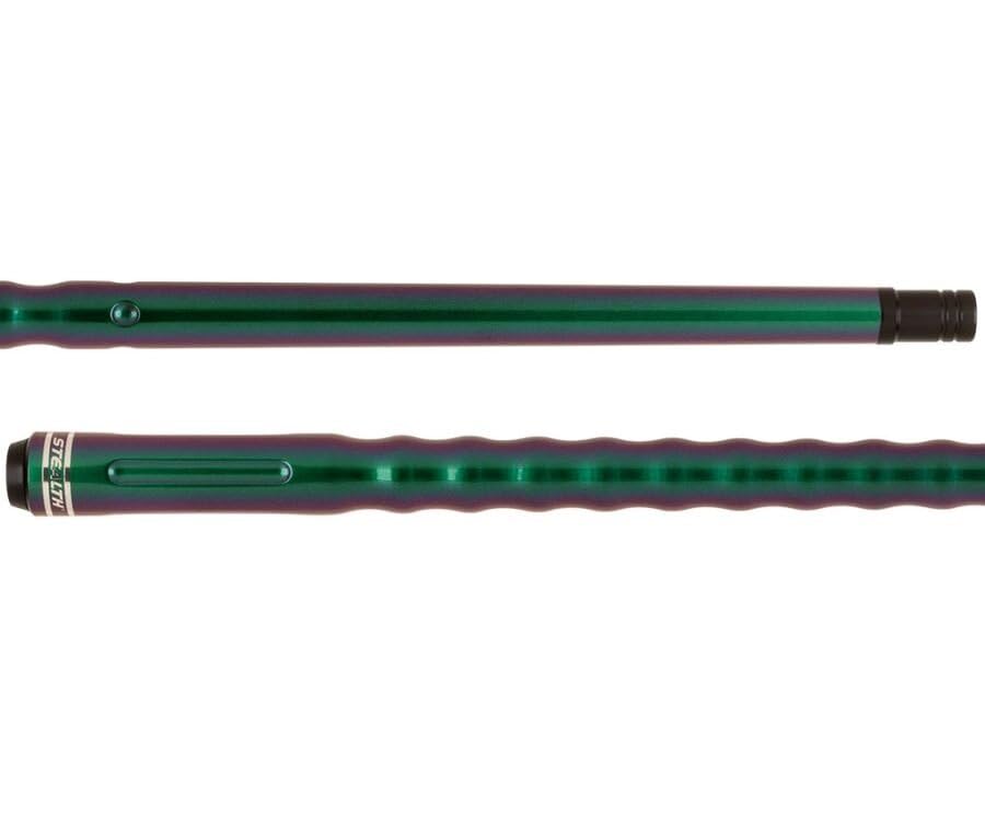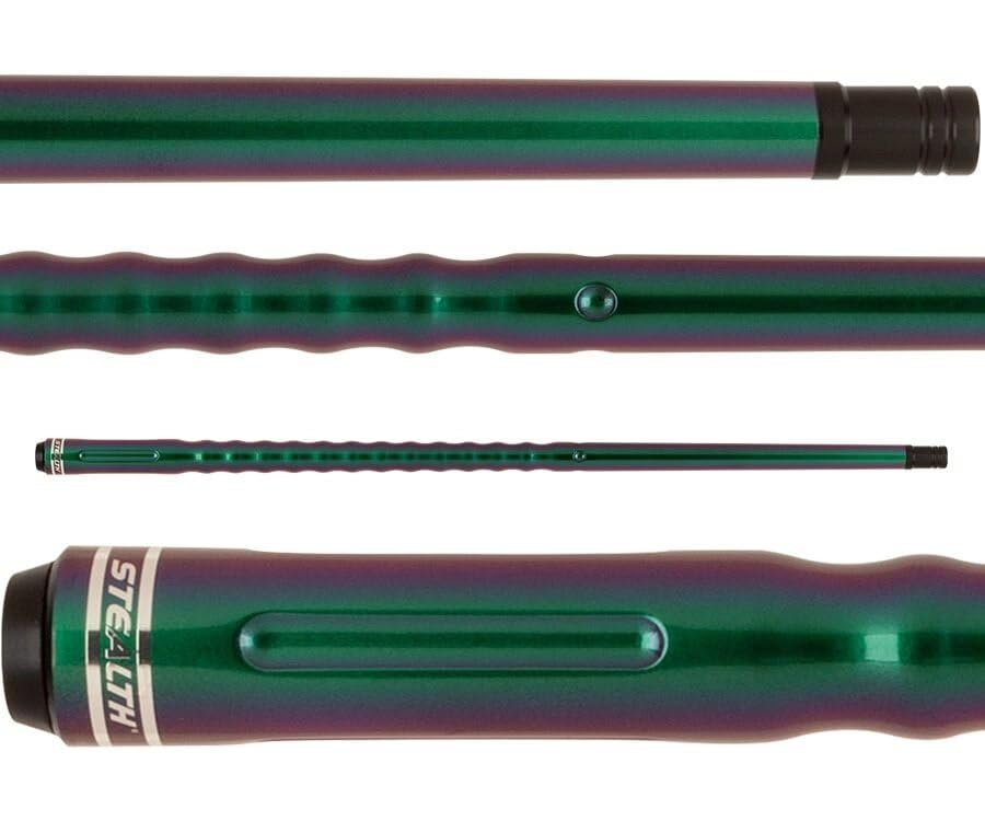 Stealth cues are popping out like crazy! They dropped a wicked pool cue with a color shifting "Chameleon" finish that shifts from Green to Purple. It catches the light in a beautiful way, it may absolutely be hard to look away. This cue of course has the iconic Dooley Handle for an ensured gorilla grip. This cue comes with jont protectors and is easily weight changable with the Action brand weight bolts.