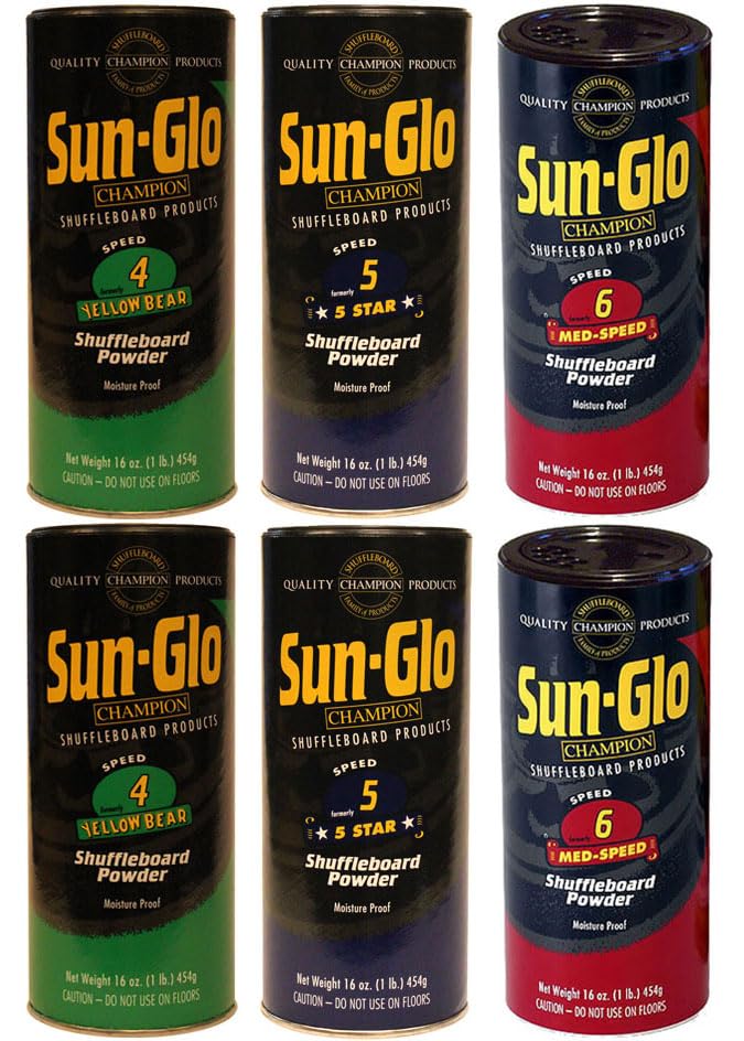 � Speed 5 (Formerly 5 Star) - For a medium-fast game, and ideal for all 14- to 22-foot shuffleboard playing fields. Another popular powder for both professional and social players. This powder gives players a comfortable game - with optimum speed and control.