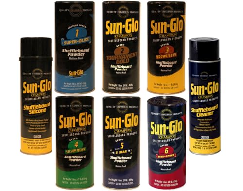 � Speed 5 (Formerly 5 Star) - For a medium-fast game, and ideal for all 14- to 22-foot shuffleboard playing fields. Another popular powder for both professional and social players. This powder gives players a comfortable game - with optimum speed and control.