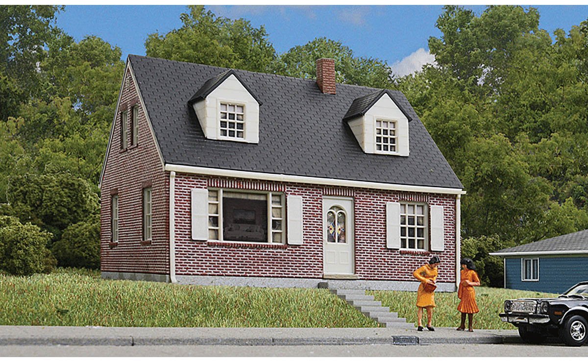 Features: Typical Modernized Suburban Home Design; Built Coast-to-Coast - Most Still Lived in Today; Detailed Brick Siding; Three Different Front Walls with Appropriate Windows & Doors; Add-on Roof Mounting Pad for Interior Lighting (Available Separately); Separate Downspouts; Printed Interior Details; Molded in Four Colors & Clear Plastic.
