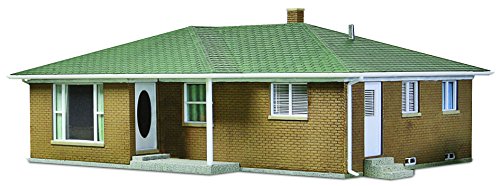 Features: Single Story Brick with Basement & Asphalt Shingle Roof; Built by the Thousands in the Diesel Era; 2 Alternate Front Doors for Realistic Variety; Printed Interior Sheet; Molded in 3 Colors & Clear Plastic.