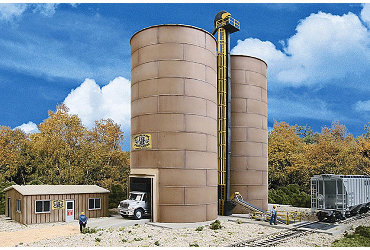 Features: Perfect for Modeling Modern Transfer Facility; Prototypes Handle Sand, Road Salt, Fertilizer & Other Granular Materials; Railcar Unloading Pit with Conveyor; Twin Storage Silos with Pull-Through Loading for Trucks; Main Office & Guard Shack; Printed Company & Safety Signs; Molded in 5 Colors & Clear Plastic.