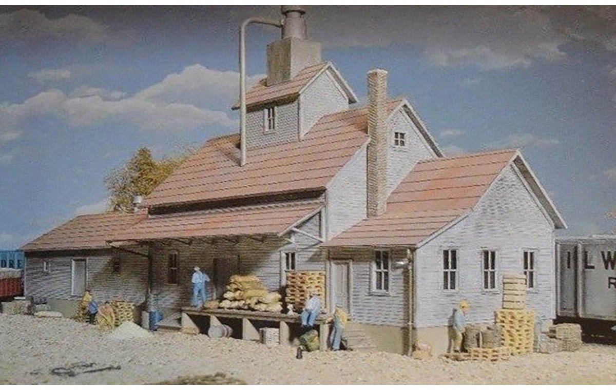 Still a very important trackside business in areas where livestock and dairy production require a constant supply of feed, this detailed model is complete with authentic "wooden" drop siding, a large dust collector, rail and truck unloading docks and colorful decals.