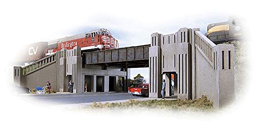 The Art Deco Highway Underpass is a unique structure that adds a dash of panache to post-30s era highway scenes. As it's supplied, it will handle two tracks, but it's adjustable so it can be used on a single track line, or combined with a second kit to handle three or more tracks. Track spacing is also easily adjusted to NTrak and other modular layout standards. This easy-to-build kit comes with parts molded in appropriate colors and includes realistic decals.