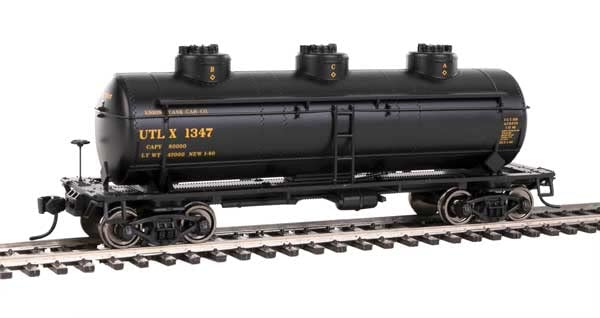 Walthers HO Scale 36' 3-Dome Tank Car UTLX (Black/Gold Lettering) #1347