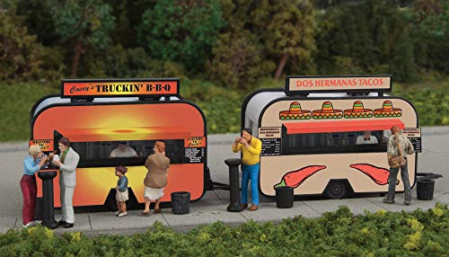 Serve up some fun along your layout with these colorful Walthers SceneMaster Food Trailer kits! A great addition to any busy lunchtime scene, you'll find trailers like these dishing up any kind of food you can image in business and commerical areas, industrial parks and carnival midways. Each kit is complete with printed signs, awnings and interiors in full color, and includes parts to build two complete trailers.
