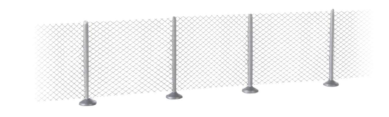 Protect and secure all types of N Scale structures, animal pens and more with the SceneMaster Metal Industrial Fence kit! Typical of chain-link fencing, the kit includes a fine aluminum mesh screening that's just 0.1mm thick with mesh sized at 1.2mm, perfect for N Scale. Easily customized or combined (additional kits each sold separately) for a larger areas, the kit features: