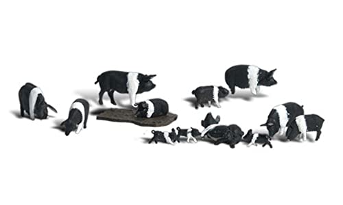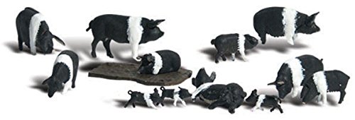 Woodland Scenics HO Scale Scenic Accents Figures/Animal Set Hampshire Pigs (12)