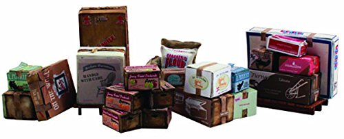 Tons of freight move daily through every part of America. You’ll find it stacked on industrial loading docks, aside packing houses, on harbor docks or at train depots. This figure set includes an assortment of colorful, highly detailed crates, boxes, bags and sacks of varying shapes and sizes.