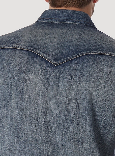 One wardrobe staple a cowboy should never be without is a work shirt that can hold its own. That's precisely why our Cowboy Cut® work shirt is designed with hard work in mind, so you can get any job done with total confidence. Every Cowboy Cut® work Western denim snap shirt comes with all the authentic details you'd expect from a tried-and-true Wrangler® essential, including Western front and back yokes, a spread collar, two spade flap snap pockets, the Wrangler® logo riser label on the left pocket, and our decorative 'W' stitching. Just like the jeans in our Cowboy Cut® collection, the Cowboy Cut® Western snap denim work shirt will keep you dressed and ready for anything.